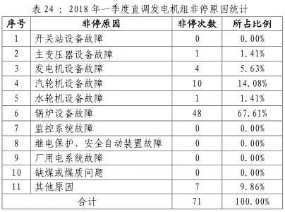 表 4-2:2018 年一季度直調(diào)機(jī)組退運(yùn)情況表