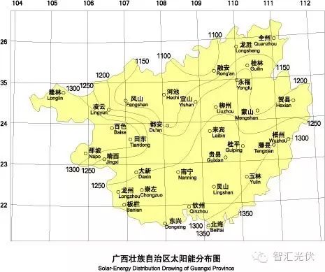 該譜圖采用了98個(gè)太陽(yáng)能輻射觀(guān)測(cè)站的數(shù)據(jù),對(duì)周邊的資源情況進(jìn)行推衍。由于實(shí)測(cè)數(shù)據(jù)點(diǎn)有限,而且完成時(shí)間較早,近10年太陽(yáng)能輻射有逐年下降的趨勢(shì),因此譜圖數(shù)據(jù)會(huì)與今實(shí)際數(shù)據(jù)有一定偏差。