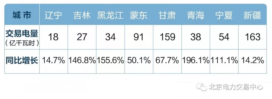 北京電力交易中心2018年11月新能源省間市場化交易情況