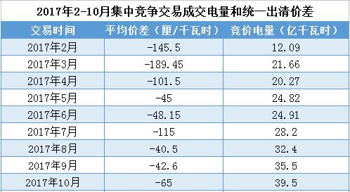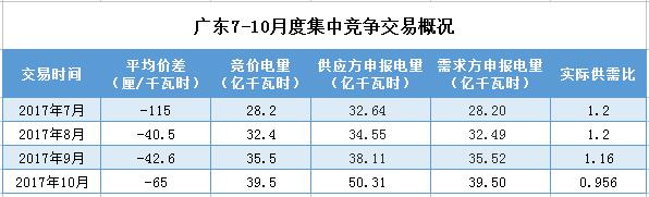 2017年廣東已組織9次月度集中競爭交易(其中1月份由于按照政府統(tǒng)一安排,沒有組織開展集中競爭交易),最大月度平均價差-189.45厘/千瓦時(3月),最小-40.5厘/千瓦時(8月);最高月度競價電量39.5億千瓦時(10月),最低12.09億千瓦時(2月),真可謂跌宕起伏。
