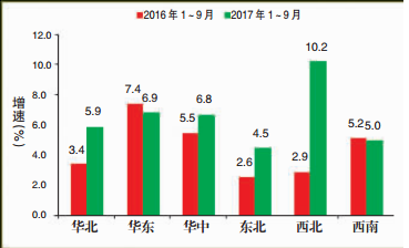 “一帶一路”、京津冀協(xié)同發(fā)展、長江經(jīng)濟帶三大發(fā)展戰(zhàn)略加快推進(jìn),區(qū)域協(xié)同發(fā)展成效進(jìn)一步顯現(xiàn)。前三季度,華北、華中、華東、東北、西北、西南區(qū)域用電增速分別為6.7%、6.9%、6.8%、4.5%、10.1%、5.4%。其中西北地區(qū)用電增速最高,增速同比上升7.3個百分點,主要是受高耗能用電恢復(fù)拉動;華東、西南增速同比下降0.5、0.2個百分點,主要受上年高溫導(dǎo)致基數(shù)較高影響;華北、華中、東北分別上升2.5、1.3、1.9個百分點。