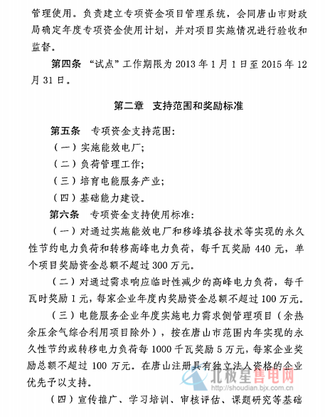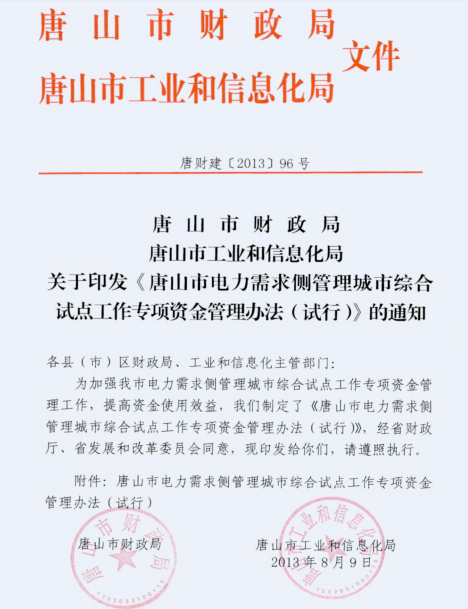 唐山市電力需求側(cè)管理城市試點政策一覽