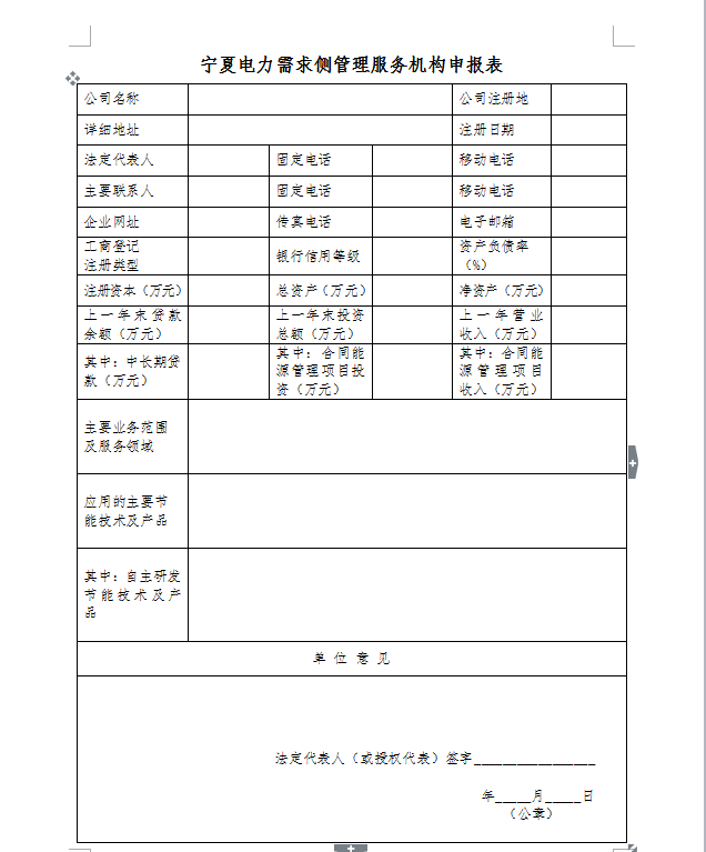 本單位自愿申請參與寧夏電力需求側(cè)管理工作,并承諾所提交的申報材料真實、合法、有效。同意在國家法律法規(guī)范圍內(nèi)披露企業(yè)有關(guān)信用信息。