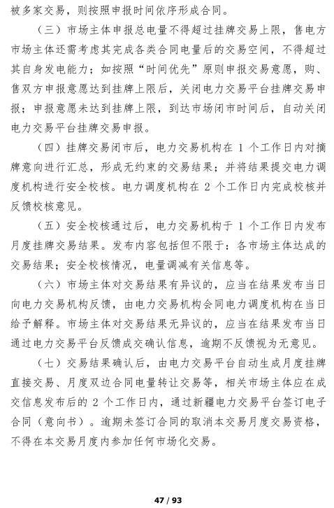 國家能源局新疆監(jiān)管辦日前發(fā)布了關(guān)于征求《新疆電力中長期交易實施細(xì)則(征求意見稿)》意見的通知。在這份長達(dá)93頁的征求意見稿中,對市場成員和義務(wù)、市場準(zhǔn)入和退出、交易品種、周期和方式、價格形成機(jī)制、交