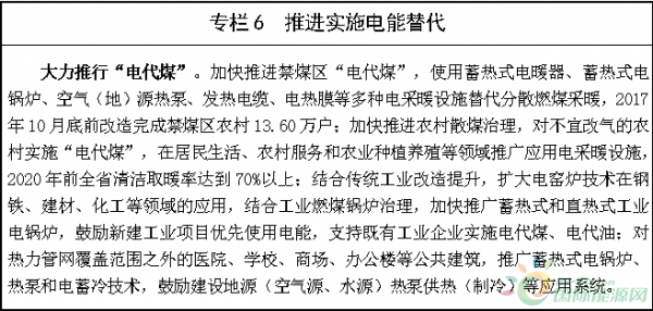 立足能源清潔化發(fā)展和大氣污染防治,突出重點領(lǐng)域,完善鼓勵措施,積極實施電能替代工程,不斷提高電能占終端能源消費比重、可再生能源占電力消費比重及電煤占煤炭消費比重。重點在居民采暖、生產(chǎn)制造、交通運輸、電力供應(yīng)與消費四個領(lǐng)域,推廣應(yīng)用電采暖、工業(yè)電鍋爐(窯爐)、電動汽車、船舶岸電、電蓄能調(diào)峰等先進技術(shù)和產(chǎn)品,擴大大電力消費規(guī)模,提升電氣化水平。