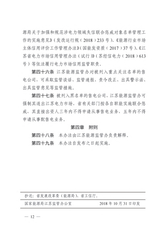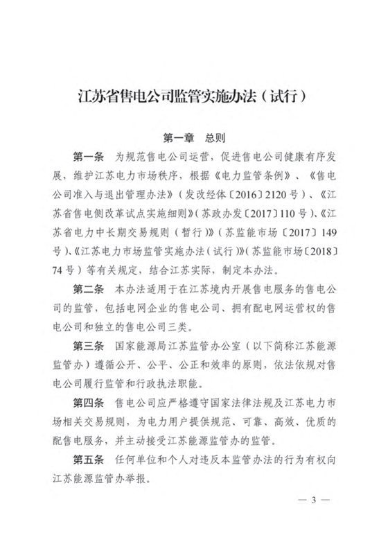 江蘇能監(jiān)辦印發(fā)售電公司監(jiān)管實(shí)施辦法(試行)正式施行