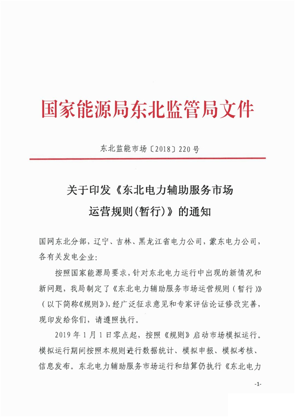 隨著《東北電力輔助服務市場運營規(guī)則(暫行)》正式印發(fā),東北市場已于2019年1月1日零點起按照新規(guī)則啟動市場模擬運行。