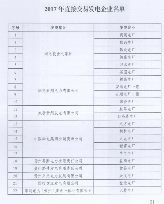 貴州2017電力市場化交易工作實施方案