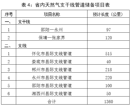 表4:省內(nèi)天然氣支干線管道儲(chǔ)備項(xiàng)目表