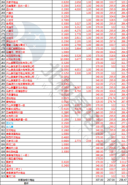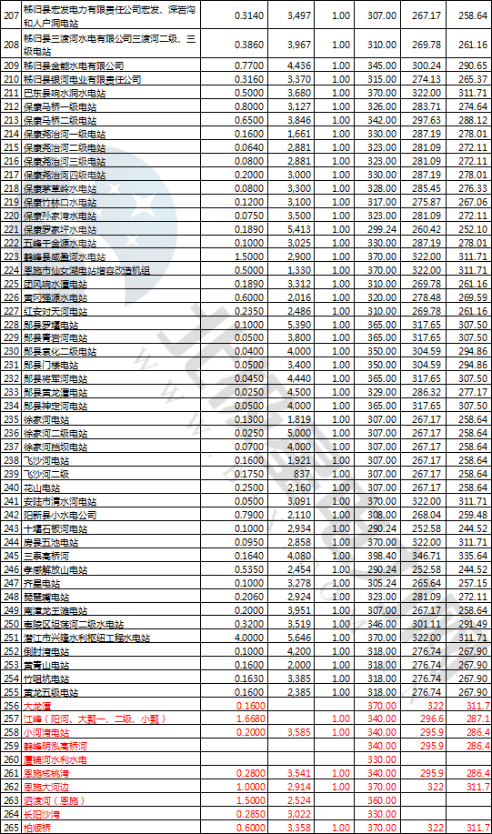2.湖北省現(xiàn)行水電站上網(wǎng)電價表