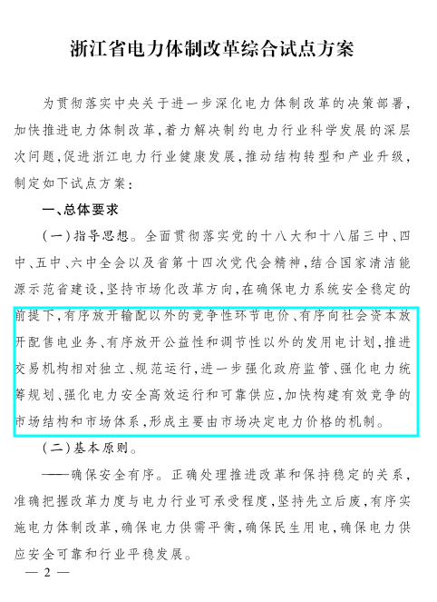 浙江省電力體制改革綜合試點(diǎn)方案印發(fā):建立以電力現(xiàn)貨市場(chǎng)為主體的省級(jí)電力市場(chǎng)體系