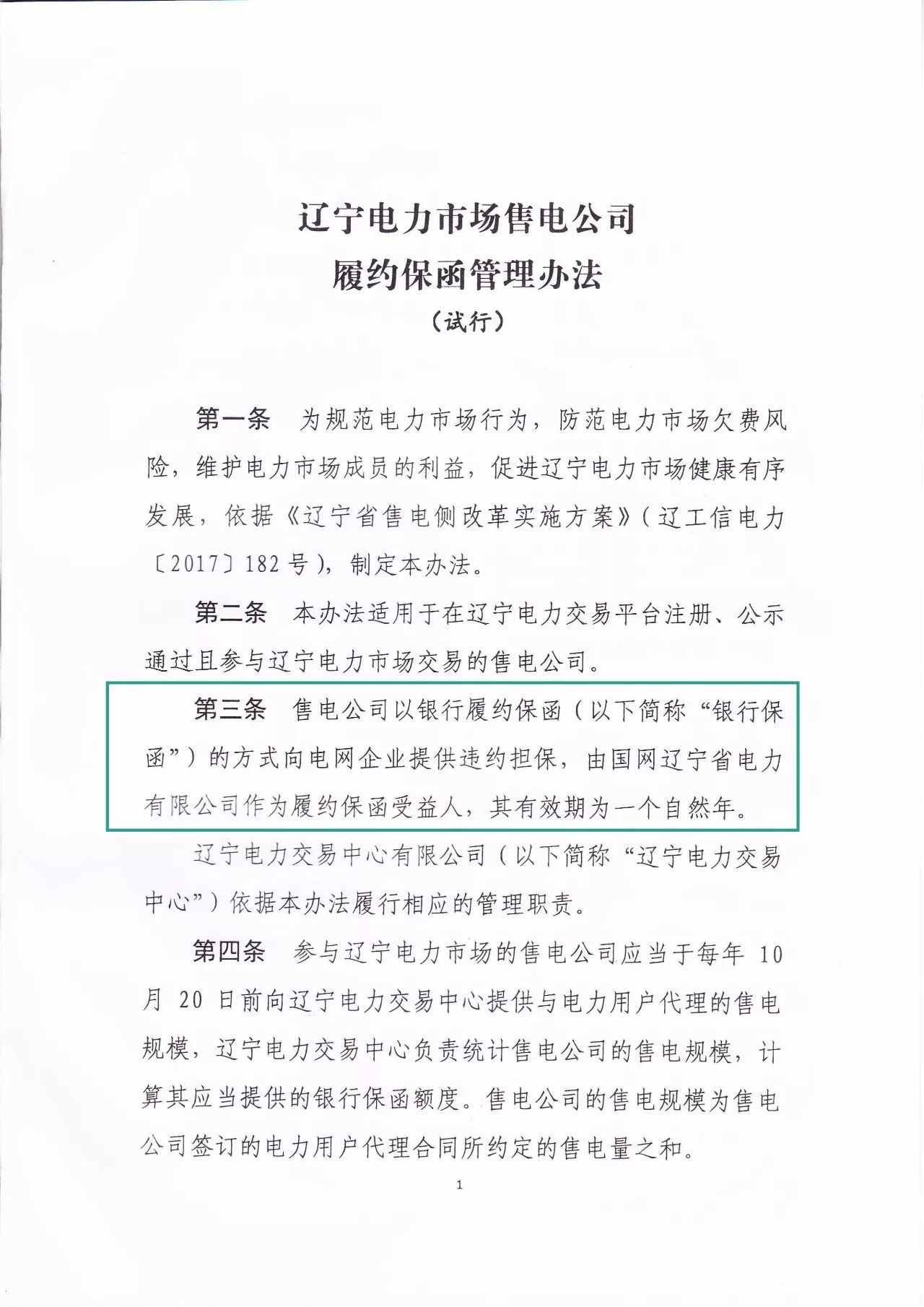遼寧電力市場售電公司履約保函管理辦法發(fā)布
