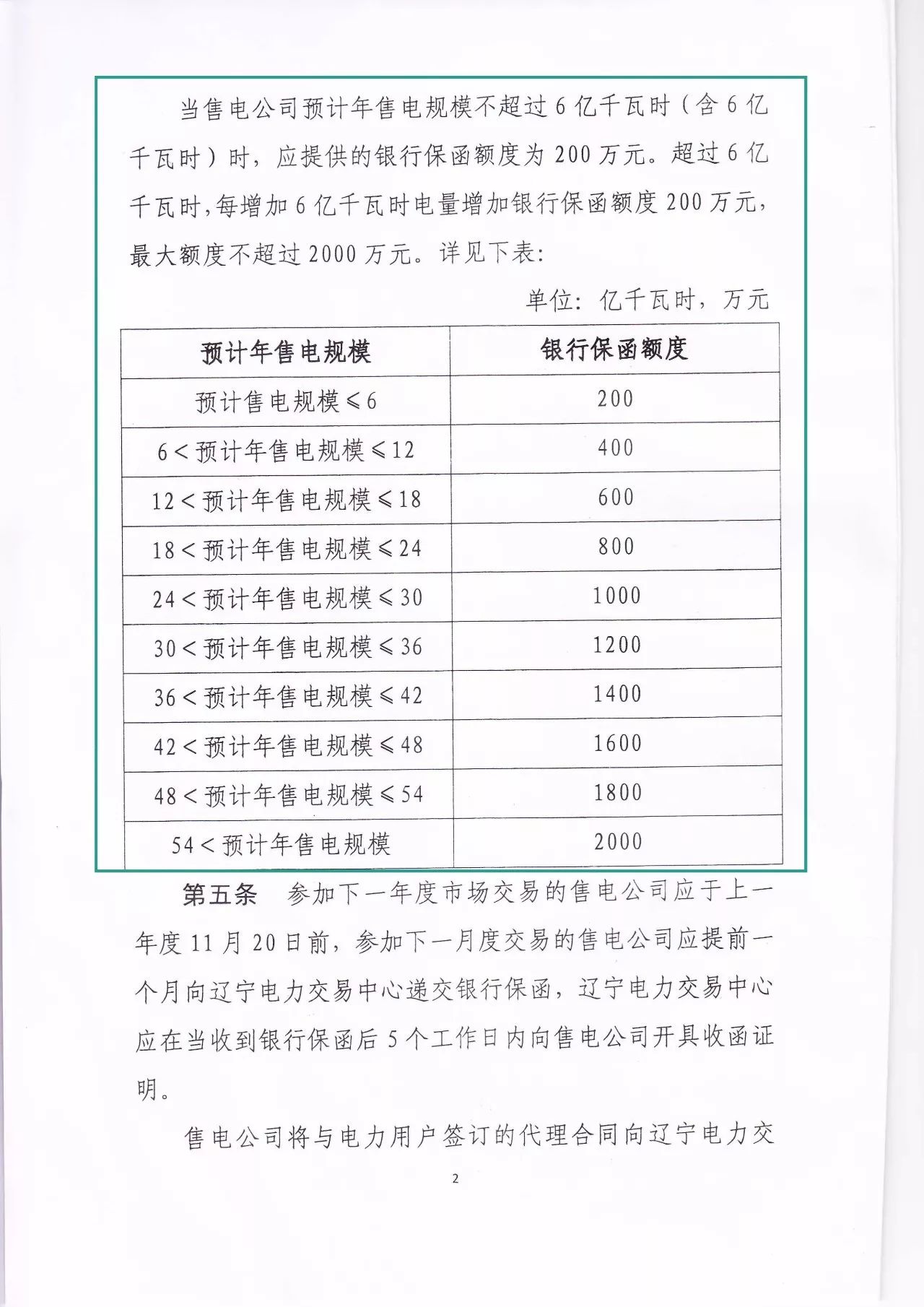 遼寧的保函制度一共分有10檔,詳細(xì)給出了每個售電規(guī)模對應(yīng)的銀行保函額度,最低200萬,封底2000萬。這個設(shè)定與廣東、云南一樣,只是遼寧的電量劃分規(guī)模最高去到54億千瓦時,廣東的上到30億就已經(jīng)按照封底計算了。