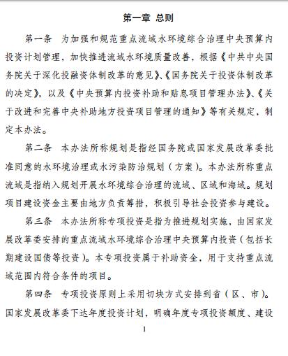 發(fā)改委印發(fā)重點(diǎn)流域水環(huán)境綜合治理中央預(yù)算內(nèi)投資計(jì)劃管理辦法的通知