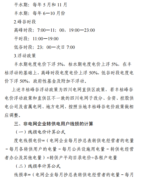 近日四川省發(fā)展和改革委員會(huì)發(fā)布了《關(guān)于清理規(guī)范非電網(wǎng)轉(zhuǎn)供電環(huán)節(jié)收費(fèi)有關(guān)事項(xiàng)的通知(征求意見(jiàn)稿)》,提出商業(yè)綜合體、產(chǎn)業(yè)園區(qū)、物業(yè)、寫(xiě)字樓等轉(zhuǎn)供電經(jīng)營(yíng)者,應(yīng)按照轉(zhuǎn)供用戶每月電量,以及所公布的轉(zhuǎn)供電用戶電價(jià)和線損計(jì)算辦法(詳見(jiàn)附件),計(jì)算收取電費(fèi)。線損可計(jì)入物業(yè)管理費(fèi),也可隨電費(fèi)一并收取,其中:隨電費(fèi)收取的線損,線損率最高不應(yīng)超過(guò) 10%,且需在發(fā)票上單列表示,并至少每個(gè)季度向轉(zhuǎn)供電用戶公示一次計(jì)算過(guò)程。