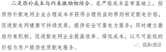 實際上在2017年,國家發(fā)改委發(fā)布了《關(guān)于制定地方電網(wǎng)和增量配電網(wǎng)配電價格的指導(dǎo)意見(發(fā)改價格規(guī)﹝2017﹞2269號)》,其原則是“彌補(bǔ)成本與約束激勵相結(jié)合,在嚴(yán)格成本監(jiān)審基礎(chǔ)上,按照彌補(bǔ)配電網(wǎng)企業(yè)合理成本并獲得合理收益的原則核定配電價格。”