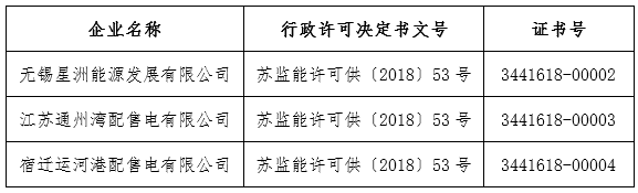 2018年6月29日,江蘇能源監(jiān)管辦對三家申請電力業(yè)務(wù)許可證的配電企業(yè)做出準(zhǔn)予許可決定,其中包含江蘇首家非電網(wǎng)企業(yè)參股的配電公司。截至目前,江蘇共有四家列入國家增量配電業(yè)務(wù)改革試點的配電公司取得電力業(yè)務(wù)許可證,取證數(shù)量列全國首位,有力推動了江蘇省售電側(cè)改革工作。