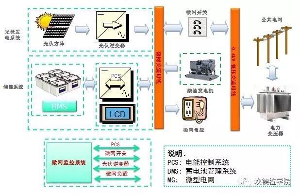 下圖是以光伏系統(tǒng)和柴油機(jī)為主的分布式能源微電網(wǎng)的結(jié)構(gòu)和組成: