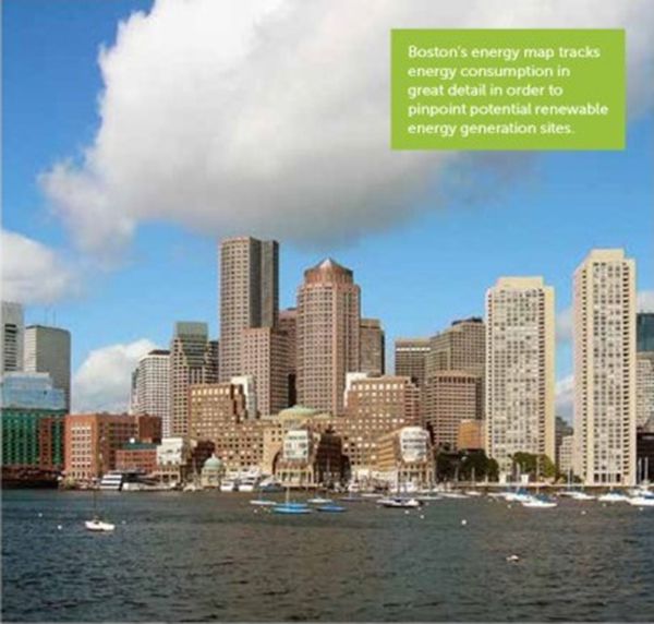 波士頓市利用能源地圖,細致追蹤能耗,識別出可利用可再生能源發(fā)電的地點