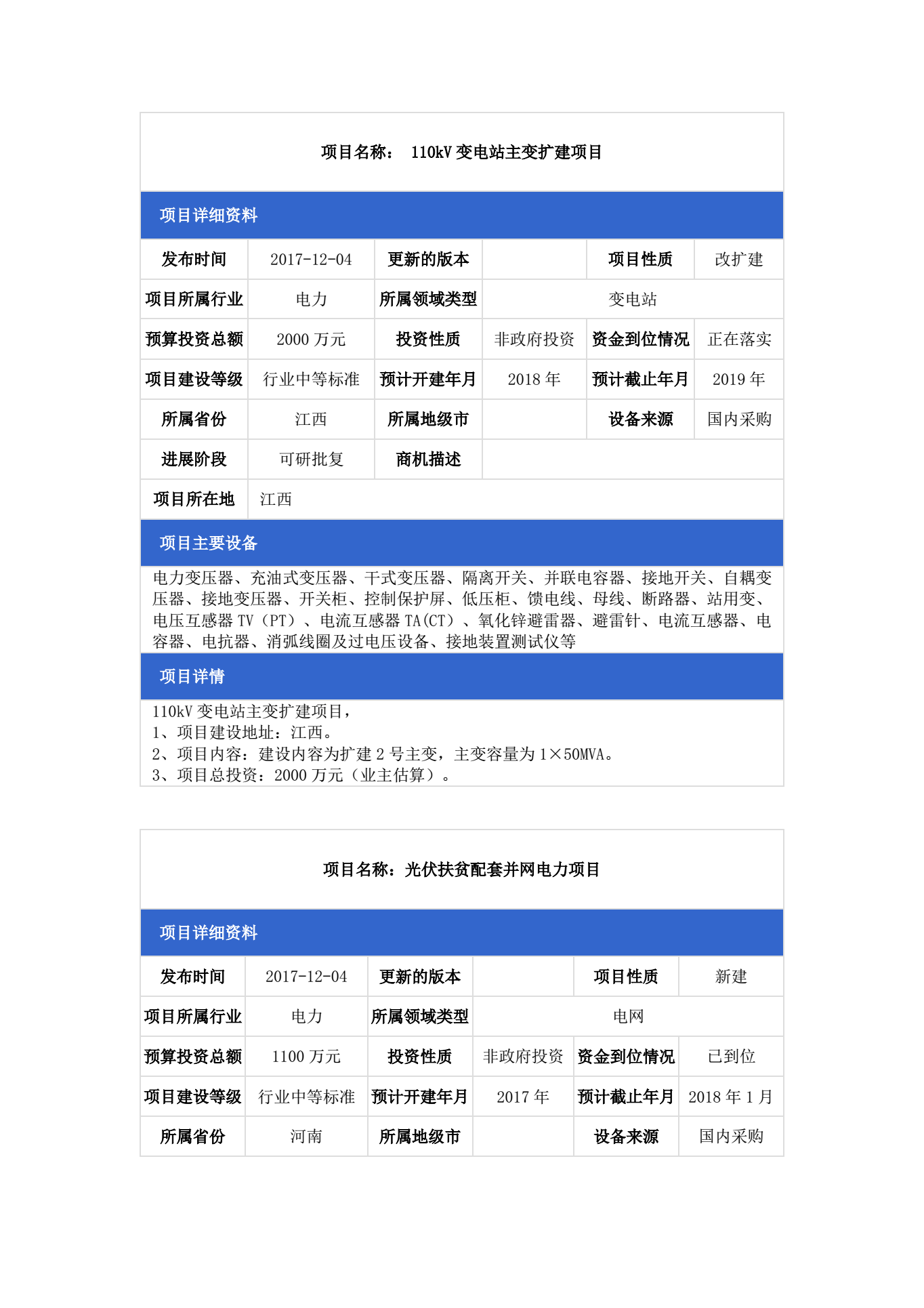 江西省110kV變電站主變擴(kuò)建項(xiàng)目、河南省光伏扶貧配套并網(wǎng)電力項(xiàng)目、河北省40MW風(fēng)電一期項(xiàng)目,最高項(xiàng)目總投資達(dá)31725.92萬(wàn)元。