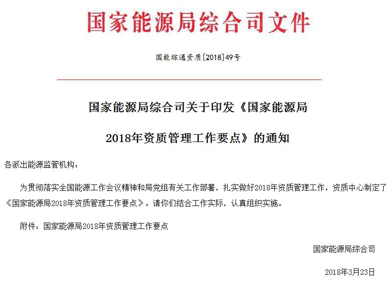 國家能源局綜合司日前印發(fā)了《國家能源局2018年資質管理工作要點》,積極推進增量配電業(yè)務改革有關工作。貫徹落實電力體制改革精神,積極推