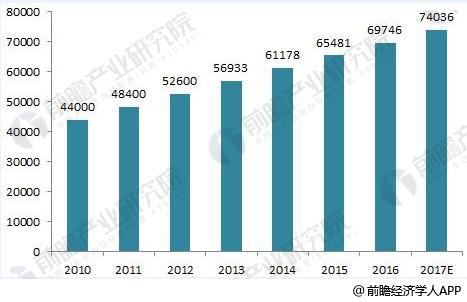 據(jù)統(tǒng)計,2016年,全國小型斷路器產(chǎn)量約為69746萬臺。據(jù)前瞻測算,2017年,全國小型斷路器產(chǎn)量約為74036萬臺。