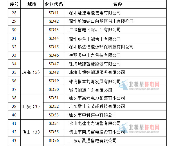 第三批列入廣東省售電公司目錄的企業(yè)名單——47家
