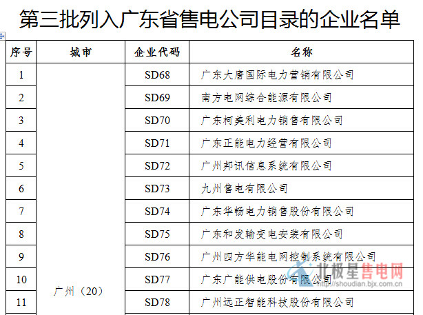 廣東省經(jīng)濟(jì)和信息化委關(guān)于公布第三批列入售電公司目錄