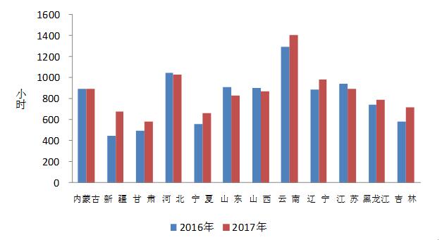 圖6:1-5月份風(fēng)電裝機(jī)較多省份風(fēng)電設(shè)備利用小時(shí)