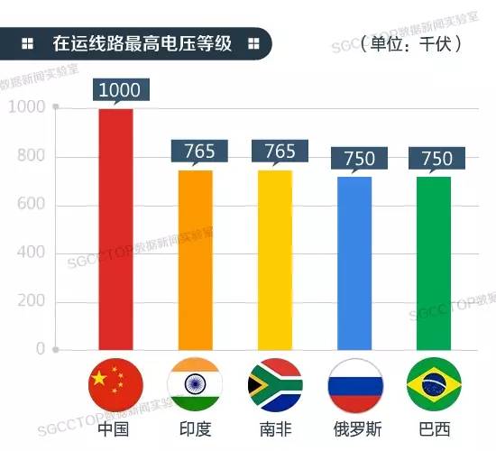 電力發(fā)展水平跟電壓等級有一定的關系,金磚五國的電網(wǎng)最高電壓等級普遍較高,部分國家的電壓甚至還是全球最高的!