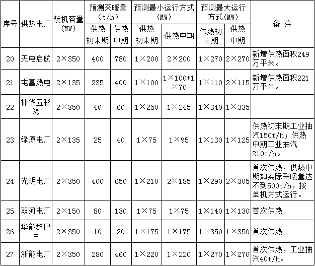 2017-2018年度采暖期公用火電廠運(yùn)行方式