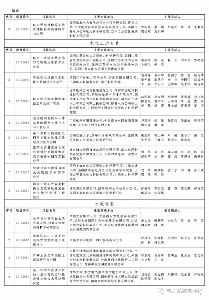 2017年度中國電力科學(xué)技術(shù)獎擬授獎項目公示(共116項)