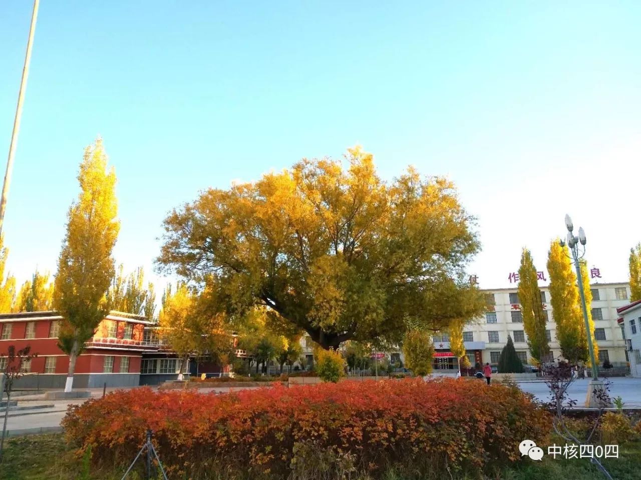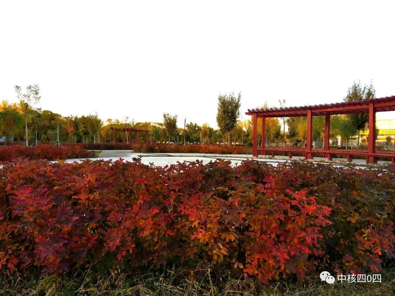 十月份的核城不再是單調(diào)的綠色,逐漸匯入了金黃、丹紅的色彩,在藍天白云的映襯下,仿佛是畫家筆下一幅絢爛的油畫。秋風吹過,這片凈土上,每一寸都散發(fā)著濃濃的秋意。道路兩旁,樹葉已泛黃,飄落的秋葉向我們訴