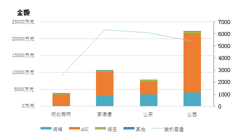 圖7華北區(qū)域分省(地區(qū))電力輔助服務補償分項費用情況