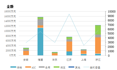 圖10華東區(qū)域分省(市、區(qū)域)電力輔助服務補償分項費用情況