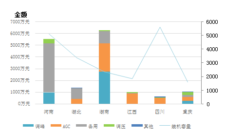 圖11華中區(qū)域分省(市)輔助服務補償分項費用情況