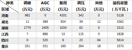 (七)華中區(qū)域電力輔助服務補償情況