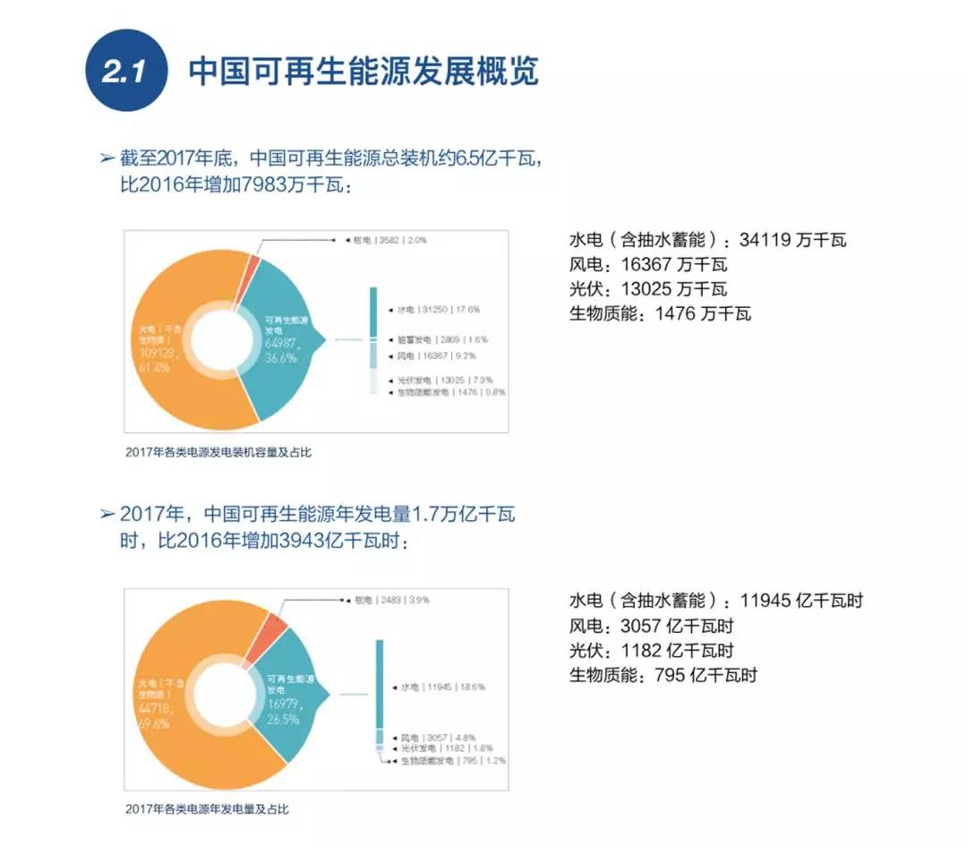 到2017年底,中國(guó)可再生能源總裝機(jī)容量約6.5億千瓦,占全國(guó)總裝機(jī)量的36.6%,可再生能源發(fā)電總量占全國(guó)發(fā)電總量的26.5%。