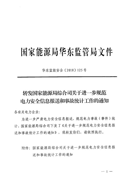 大云網(wǎng)訊:據(jù)悉,日前華北能監(jiān)局發(fā)布關(guān)于轉(zhuǎn)發(fā)國(guó)家能源局綜合司關(guān)于進(jìn)一步規(guī)范電力安全信息報(bào)送和事故統(tǒng)計(jì)工作的通知(華東監(jiān)能安全〔2018〕125號(hào)),詳情如下: