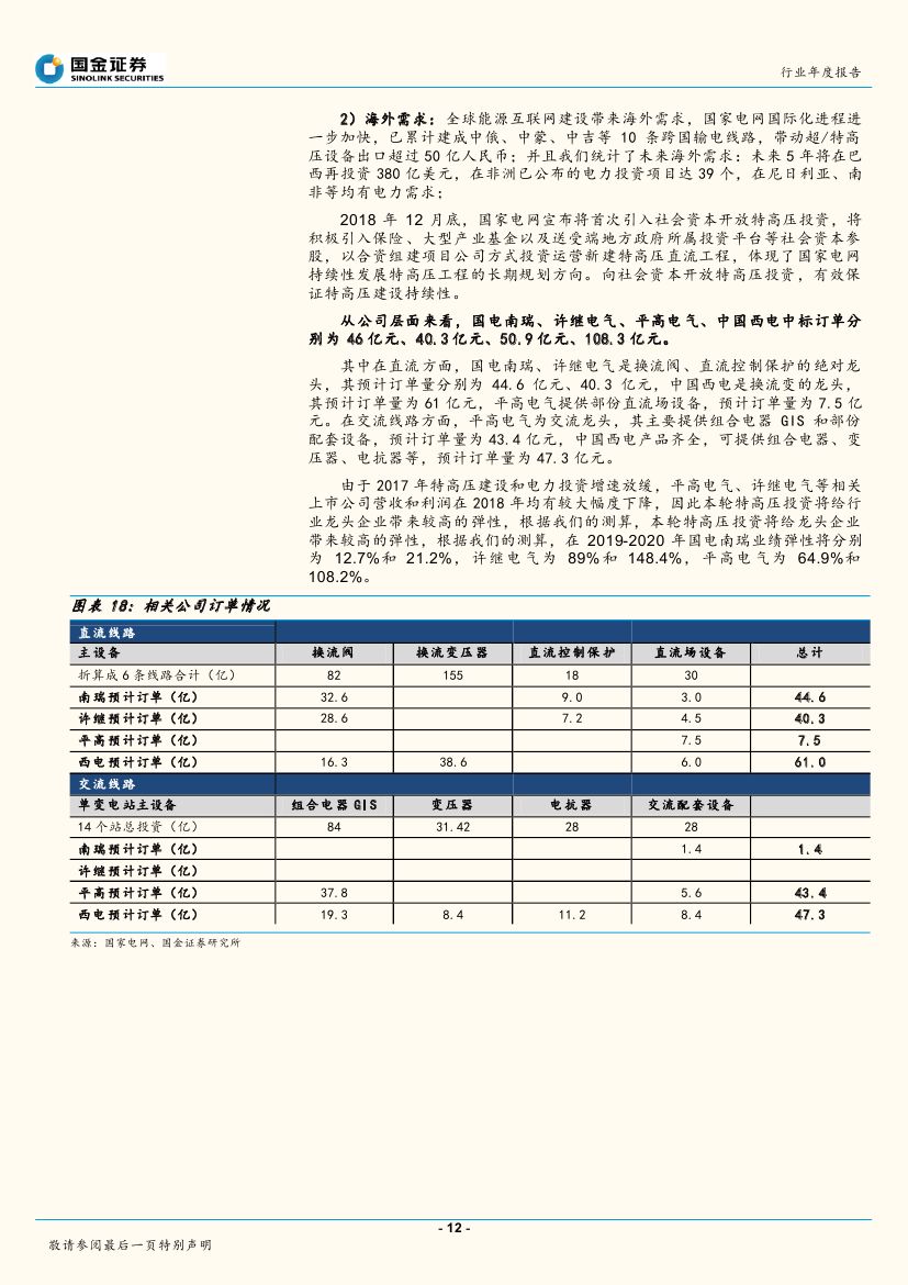 電網(wǎng):國(guó)內(nèi)電網(wǎng)投資將進(jìn)入“新常態(tài)”,電網(wǎng)投資呈現(xiàn)結(jié)構(gòu)性變化。短期來(lái)看:當(dāng)前國(guó)家拉動(dòng)基建穩(wěn)增長(zhǎng)預(yù)期大幅提升的背景下,重啟特高壓建設(shè)具有重大意義。特高壓核心產(chǎn)品龍頭公司競(jìng)爭(zhēng)力強(qiáng)且中標(biāo)份額較為穩(wěn)定,未來(lái)兩到三年特高壓業(yè)績(jī)將有望持續(xù)高增長(zhǎng)且確定性最大,重點(diǎn)推薦。長(zhǎng)期來(lái)看: 風(fēng)能、太陽(yáng)能、新能源車(chē)、微電網(wǎng)等新型能源大量興起標(biāo)志著我國(guó)能源轉(zhuǎn)型 正在加快,能源互聯(lián)網(wǎng)是能源轉(zhuǎn)型的方向,自動(dòng)化、智能化、可通訊化、信 息化電網(wǎng)建設(shè)需求將大幅上升,同時(shí)配電網(wǎng)需要兼容并蓄更多的新能源,其建設(shè)需求特別是二次需求也將快速提升。2019 年-2020 年特高壓公司