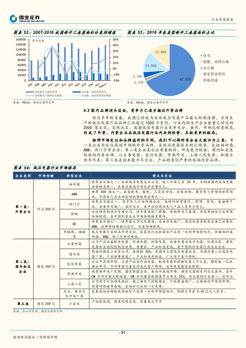 低壓電器:國(guó)產(chǎn)品牌繼續(xù)向中高端及成套解決方案方向發(fā)展,龍頭企業(yè)份額 將進(jìn)一步提升。低壓電器國(guó)內(nèi)品牌經(jīng)過(guò)長(zhǎng)達(dá) 20 多年的迎頭追擊,在研發(fā)、 生產(chǎn)、檢測(cè)及創(chuàng)新服務(wù)上均逐步接近外資水平。2019 年低壓電器行業(yè)集中度 將持續(xù)提升,國(guó)內(nèi)品牌中高端趨勢(shì)進(jìn)一步深入,同時(shí)向成套解決方案發(fā)展。 2019 年行業(yè)增速將有望保持 7%左右的中速增長(zhǎng),看好該領(lǐng)域份額不斷提升 的龍頭企業(yè),以及在中高端市場(chǎng)及系統(tǒng)解決方案表現(xiàn)突出的白馬企業(yè)。