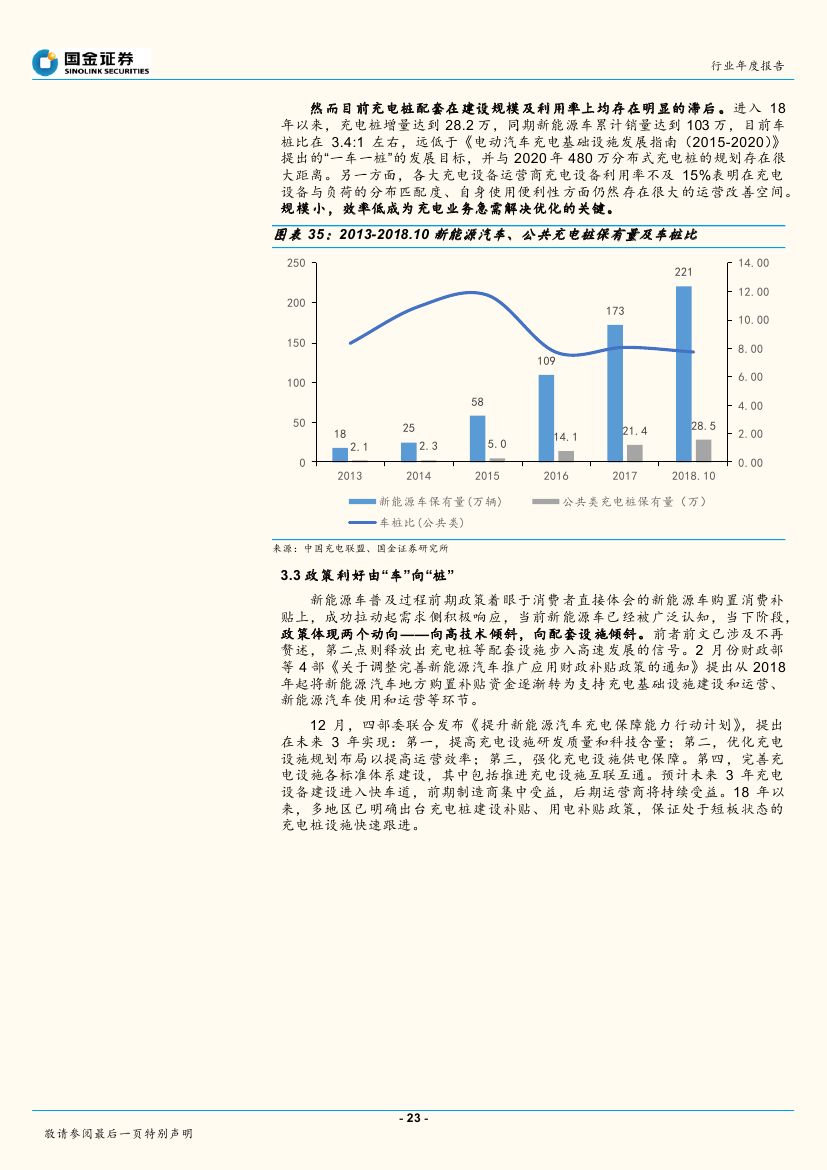 充電樁:下游拉動(dòng)+政策利好,充電樁產(chǎn)業(yè)鏈迎來(lái)機(jī)遇期。截止 11 月份我國(guó) 新能源車(chē)保有量達(dá)到 250 萬(wàn),車(chē)樁比例為 3.4:1。充電樁一定程度制約了新 能源車(chē)消費(fèi)需求的進(jìn)一步增長(zhǎng),該情況亟待改善,加之補(bǔ)貼政策傾斜逐步由 車(chē)轉(zhuǎn)向樁,未來(lái) 3 年充電設(shè)備制造商迎來(lái)廣闊市場(chǎng)空間。我們判斷 2019 年 將出現(xiàn)兩類(lèi)趨勢(shì):1)充電量將急劇增大,其中公共類(lèi)充電樁快充需求隨著 運(yùn)營(yíng)車(chē)數(shù)量的不斷增大也將快速放大。2)充電樁數(shù)量快速增長(zhǎng),以進(jìn)一步 縮小車(chē)樁比,其中充電樁特別是公共類(lèi)充電樁功率將呈現(xiàn)明確提升趨勢(shì),整 機(jī)制造商、充電模塊等電力電源設(shè)備制造商將直接受益。