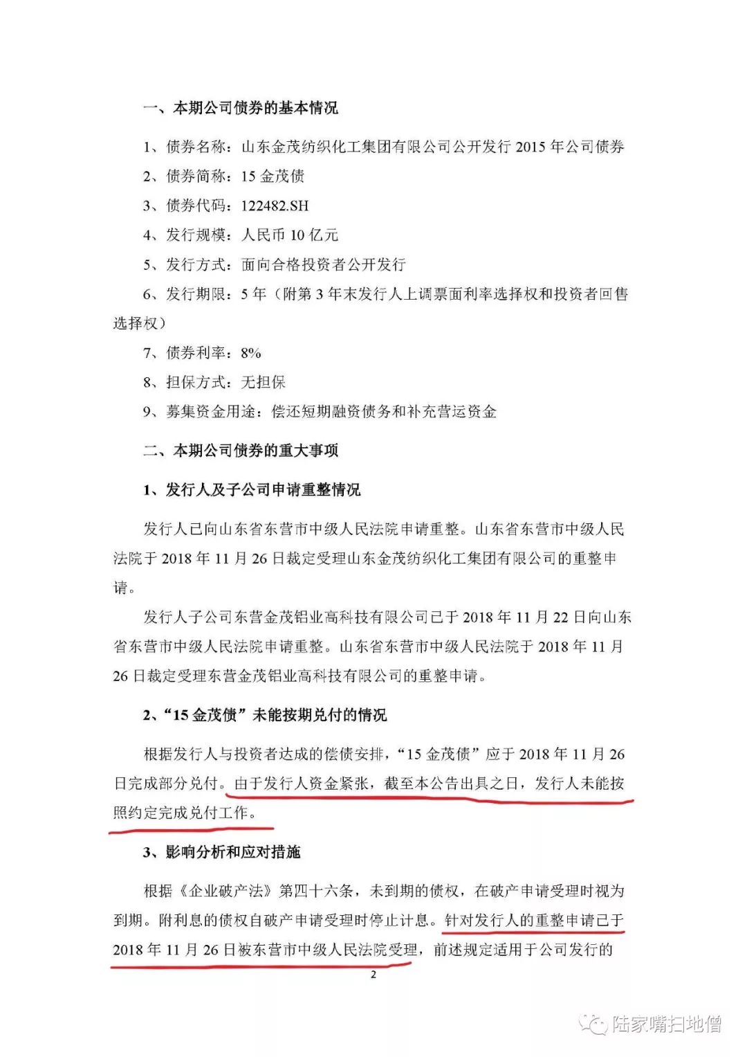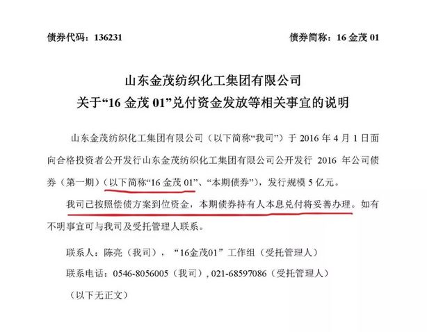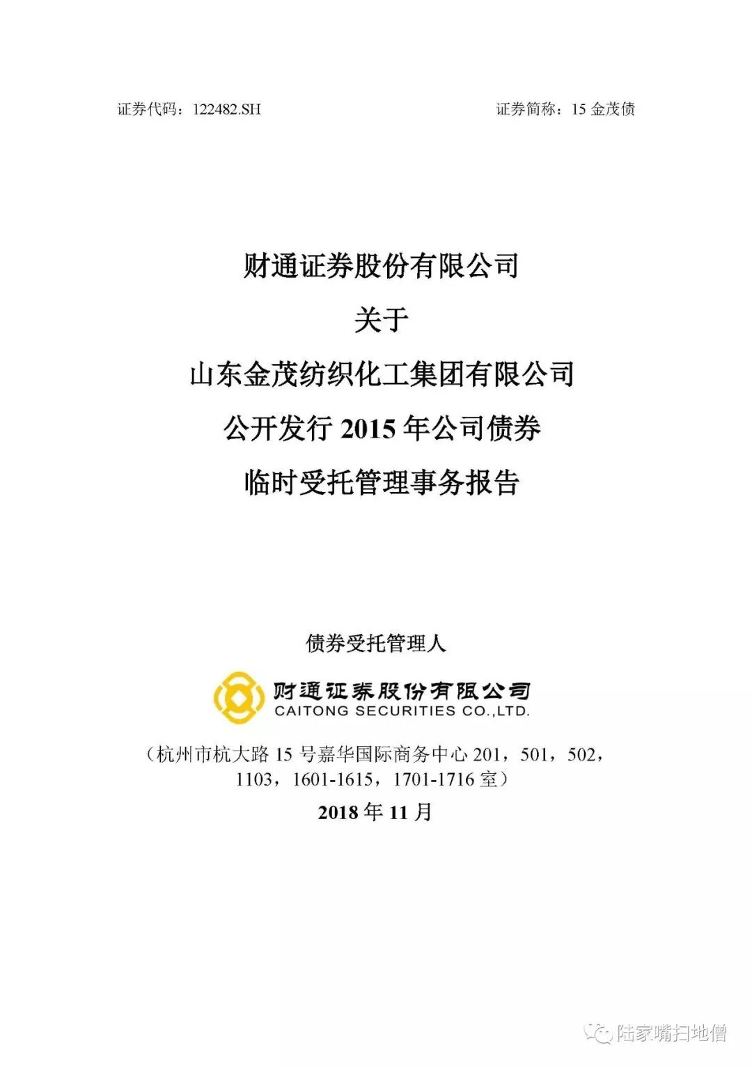 2018年11月28日,山東金茂紡織化工集團(tuán)有限公司(以下簡稱山東金茂)一天之內(nèi)爆出兩只債券違約,“15金茂債”、“16金茂01”均未按期兌付。