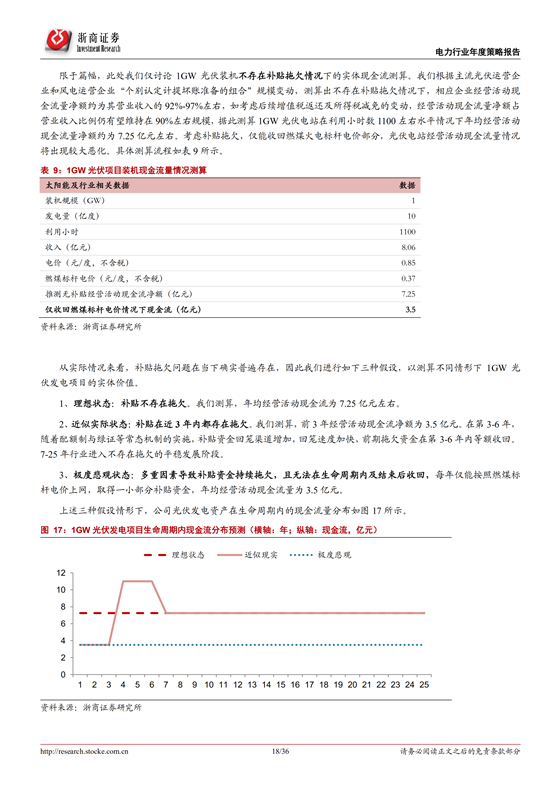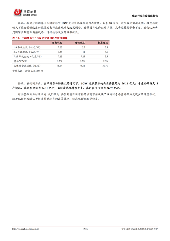 新能源發(fā)電已經(jīng)初具規(guī)模,但光伏發(fā)展過快導(dǎo)致補(bǔ)貼缺口持續(xù)放大,一定程度上使得相關(guān)公司采用公用事業(yè)邏輯和成長邏輯估值出現(xiàn)失效的情形。結(jié)合FCFF模型,我們認(rèn)為,典型光伏項(xiàng)目補(bǔ)貼能否如期到賬,將顯著影響相關(guān)公司的當(dāng)前內(nèi)在價(jià)值。同時(shí)認(rèn)為,補(bǔ)貼資金會(huì)盡管被拖欠但絕不會(huì)缺席,決策層更不會(huì)隨意調(diào)整存量項(xiàng)目補(bǔ)貼力度。因此預(yù)計(jì),后續(xù)隨著配額制及綠證等系列政策落地,市場(chǎng)對(duì)于新能源運(yùn)營商的悲觀預(yù)期有望反轉(zhuǎn)。