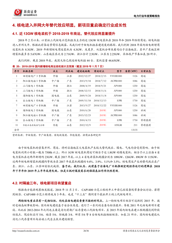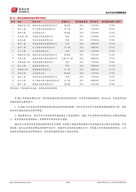核電進(jìn)入并網(wǎng)大年替代效應(yīng)明顯,新項(xiàng)目重啟確定行業(yè)成長性