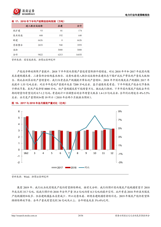 需求預(yù)期是引導(dǎo)火電反轉(zhuǎn)的核心因素,2018年正是由于官方需求預(yù)期提升,導(dǎo)致煤炭產(chǎn)能加速釋放,我們預(yù)計(jì)2018、2019年國內(nèi)原煤產(chǎn)量增速分別有望達(dá)到4%、3%以上;基于動(dòng)力煤供需平衡測(cè)算,預(yù)計(jì)2019年動(dòng)力煤整體供需情況將進(jìn)一步緩和,煤價(jià)有望進(jìn)一步回歸合理區(qū)間,帶動(dòng)火電反轉(zhuǎn)持續(xù)。