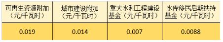 政府性基金及附加由可再生資源附加、城市建設(shè)附加、重大水利工程建設(shè)基金和水庫移民后期扶持基金等組成。