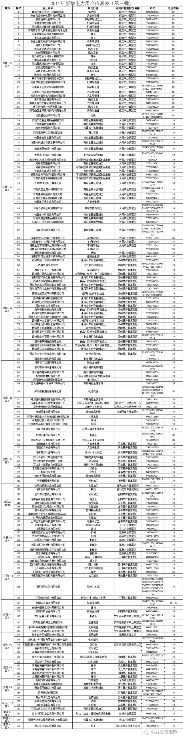 2017年河南省新增電力交易用戶(hù)名單公示(第三批)