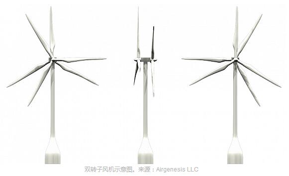 Airgenesis表示,該雙轉(zhuǎn)子風(fēng)電機(jī)組將使用兩個(gè)風(fēng)輪直徑相同的轉(zhuǎn)子,兩個(gè)風(fēng)輪同向轉(zhuǎn)動(dòng),相位角偏差30°。