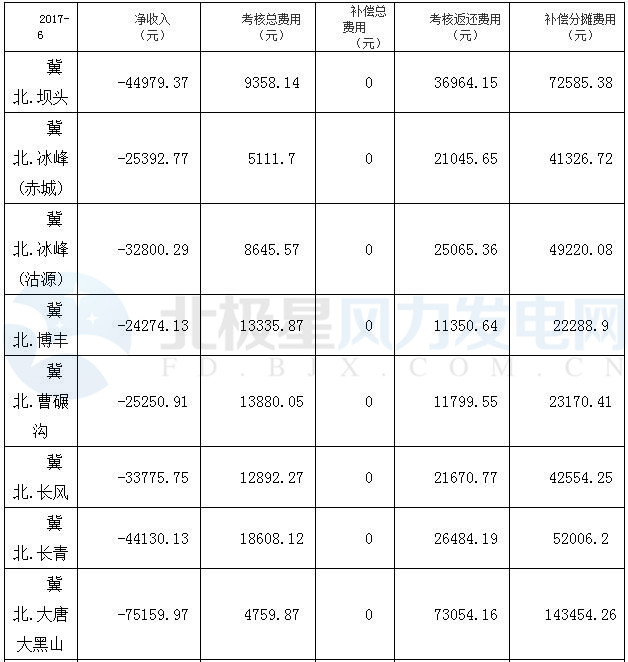 2017年6月份京津唐風(fēng)電場(chǎng)并網(wǎng)運(yùn)行管理運(yùn)行結(jié)算匯總表